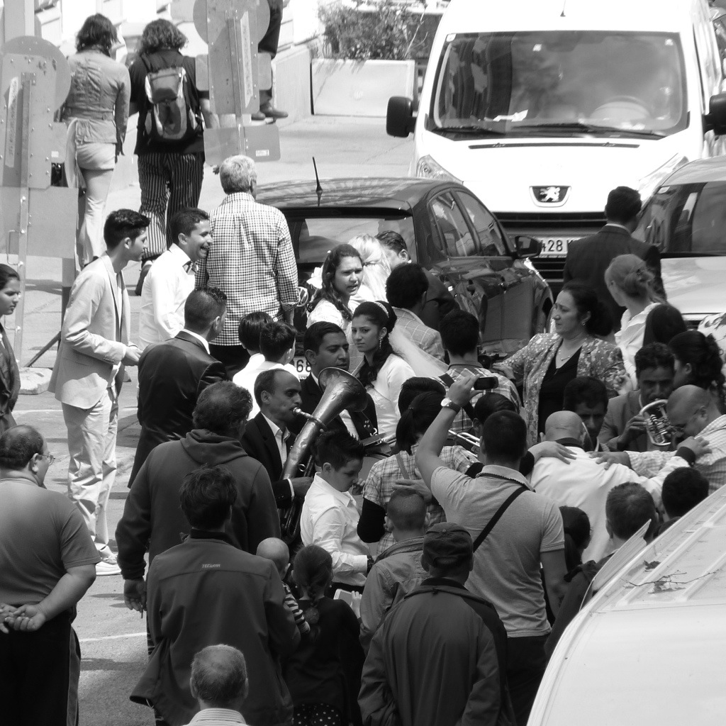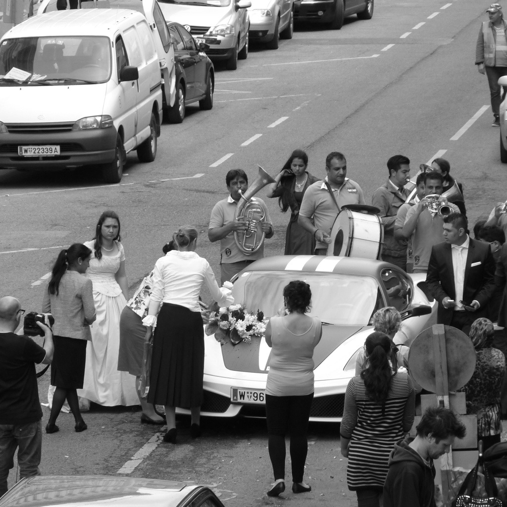 This colourful mix of cultures has attracted an increasingly visible young hip crowd. It is, nevertheless, the “Balkan” flair that is still one of the defining characteristics of our neighborhood. Last Tuesday, I heard lively brass band music playing in the street and I opened the window to realize that it was not some festival or a marching band but, in fact, a wedding: an Emir Kusturica movie come alive. Two brass bands played in front of the building of the bride as family members decorated a pimped-out Ferrari, which later led the car procession that included an RV. The bands played and guests danced in the middle of the street and, after a while, the bride and other family members joined them. It was, I think, a Serbian Roma wedding. More and more passers-by gathered in the street to watch: the mix of people who stopped and enjoyed the music was a cross-section of the population of our neighborhood. No one seemed to mind the blocked street and the traffic jam, even the UPS truck waited patiently.